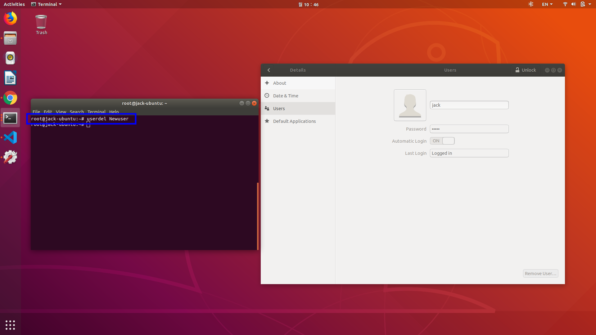 사용자를 삭제하는 명령어는 userdel "사용자 이름"입니다.