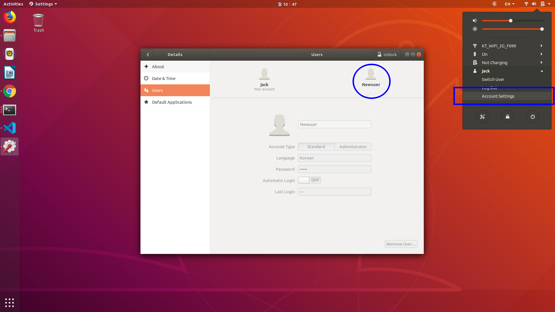 아래 사진에 방금 만들었던 "Newuser"가 생성되어 있습니다.